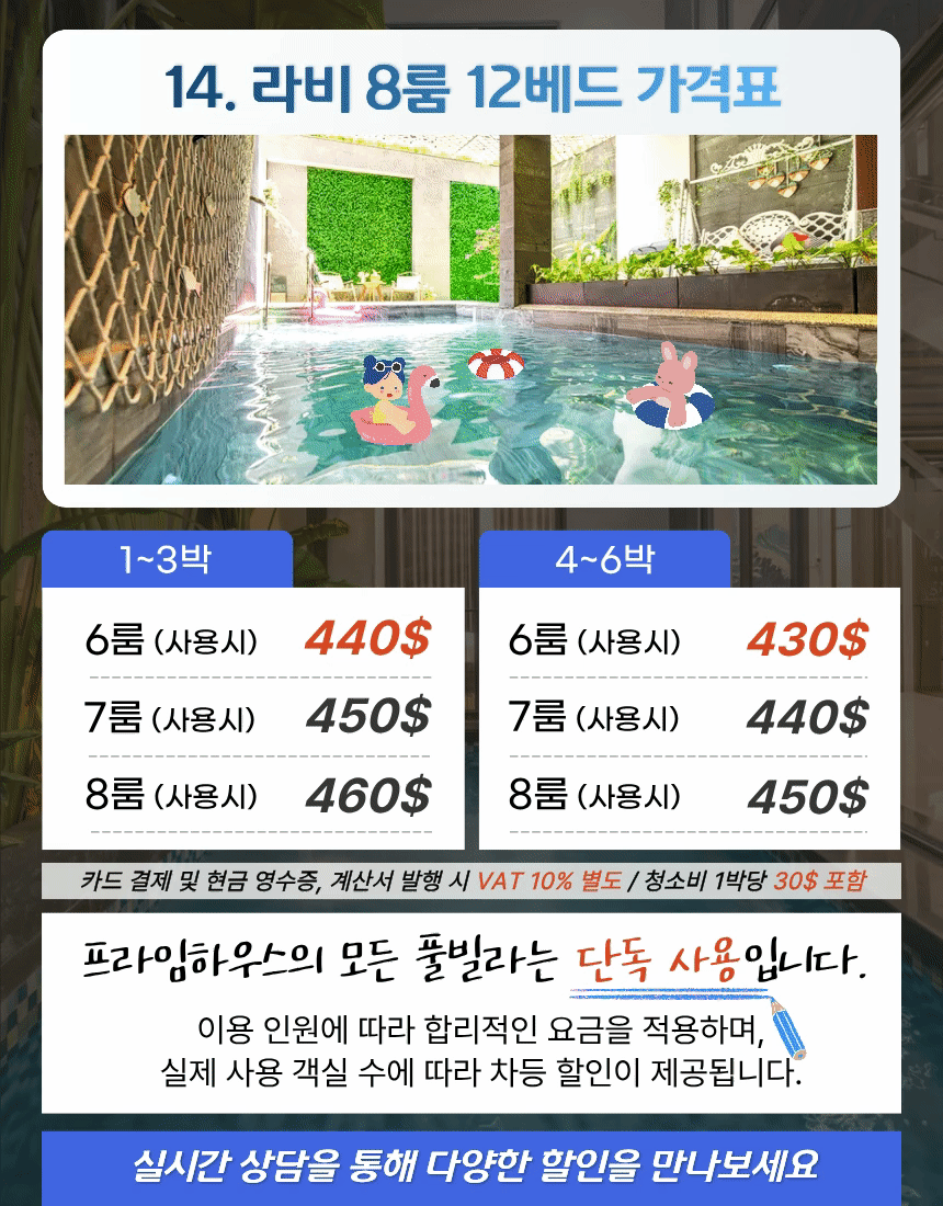 | 8룸 (사용시) | 460$ | 450$ |