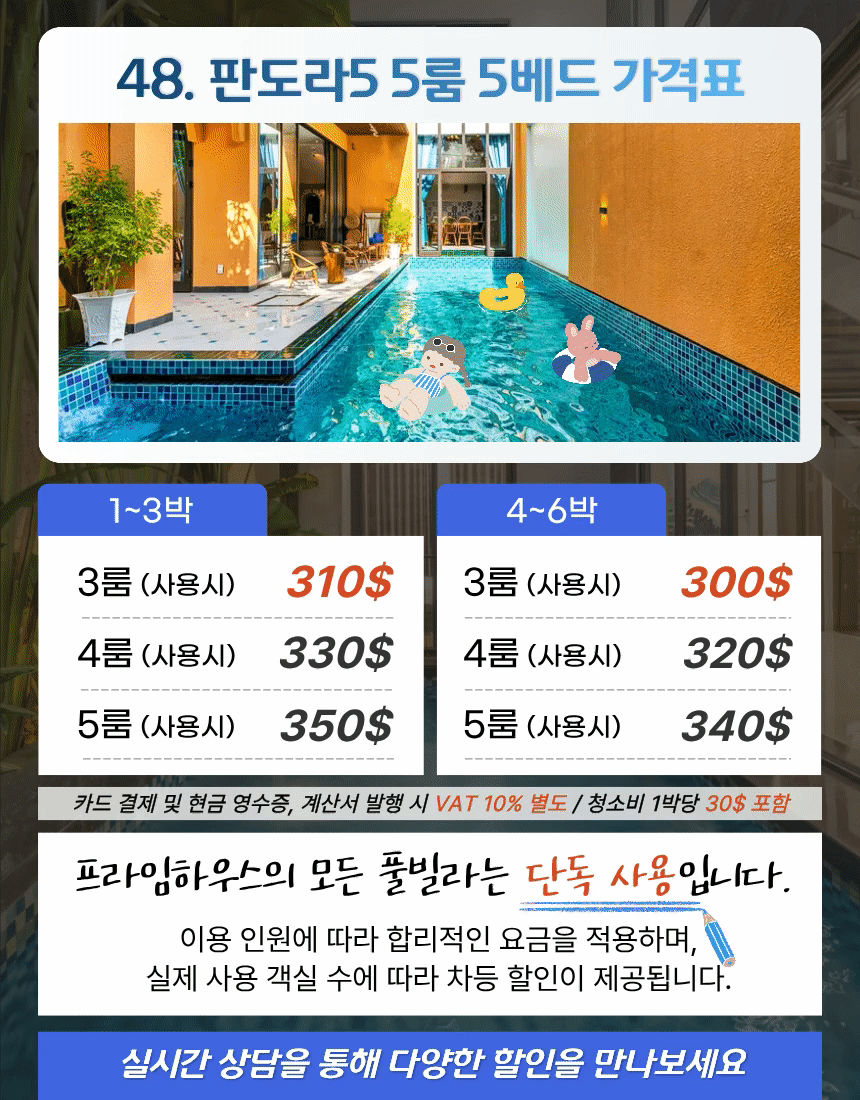 | 5룸 (사용시) | 350$ | 340$ |