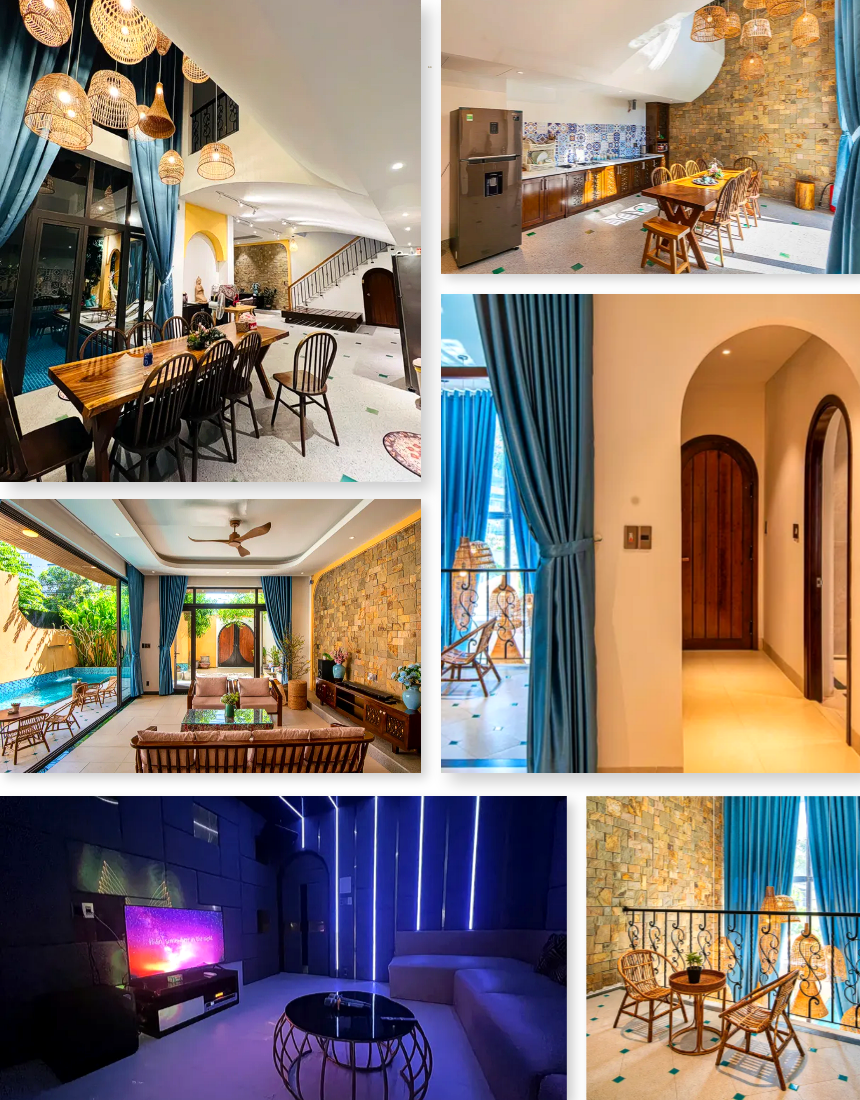 오렌지톤 외벽과 밝은 내부 디자인은 전체 분위기를 따뜻하게 유지하며 사진·휴식·모임 일정에 조화롭습니다. 주방·세탁기·생활 가전이 갖춰져 있어 실사용 편의가 높고, 미케해변·오행산·한시장까지 차량 5~10분으로 접근성도 좋습니다. 조용한 주거 라인에 위치해 밤 시간대의 휴식도 안정적인 도심형 풀빌라입니다.