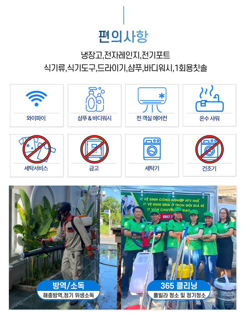 • 기본 요금에는 청소비와 공항->숙소 픽업서비스가 포함되어있습니다.