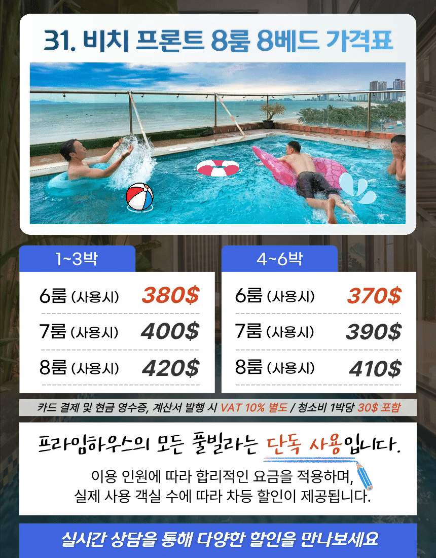 | 6룸 (사용시) | 380$ | 370$ |