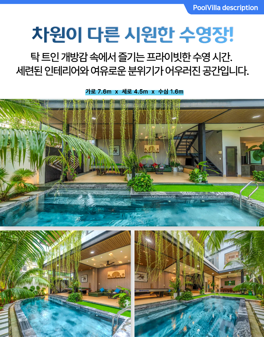 탁 트인 개방감의 인테리어와 감각적인 수영장, 포켓볼 시설이 어우러진 프리미엄 풀빌라로,