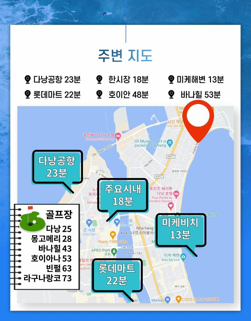 • 다낭 공항에서 약 23분정도 거리에 위치해 있습니다.