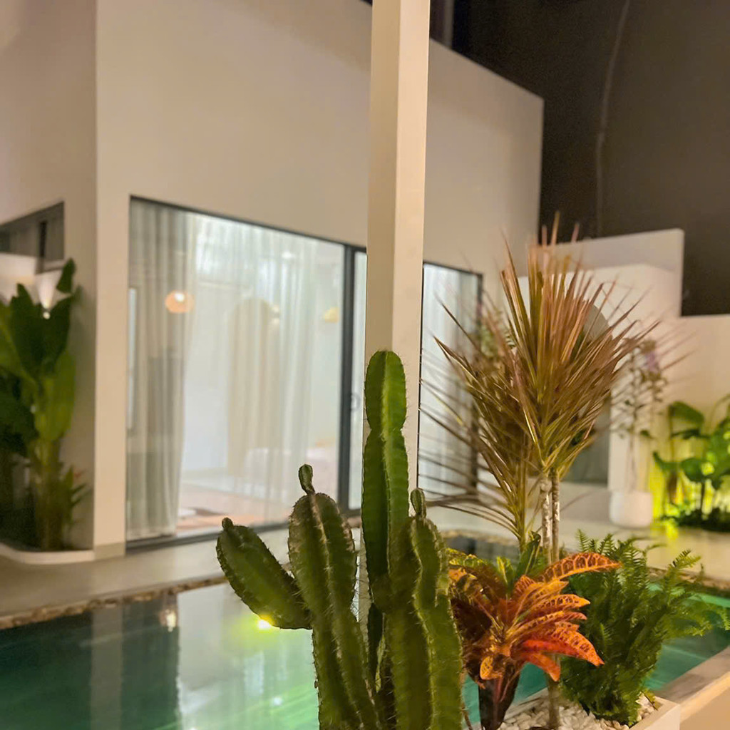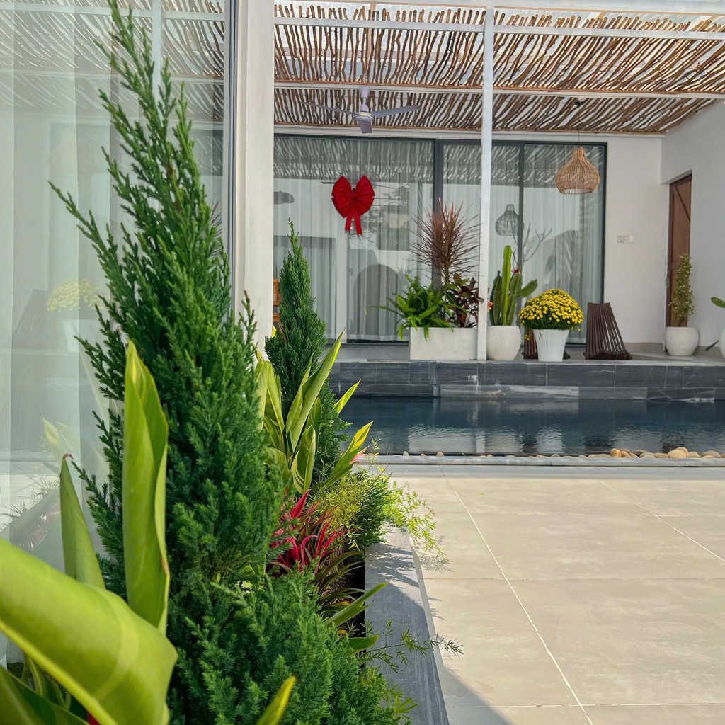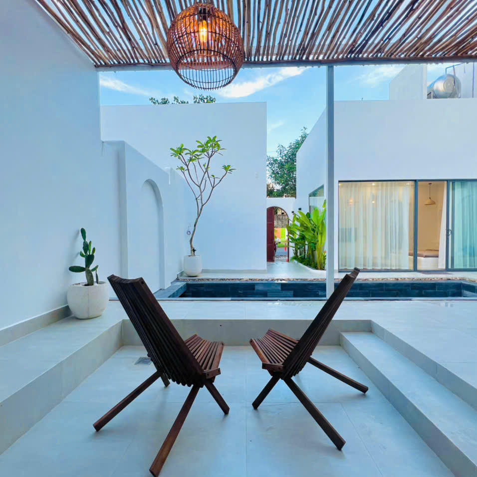 ‘16. MX 데일리’는 3룸 · 3베드 · 4욕실로 구성된 단층형 스탠다드 풀빌라로, 실외 수영장과 거실·야외 주방이 자연스럽게 연결되는 구조가 특징입니다. 수영장(4.8m × 3.6m × 1.5m)은 하루 종일 햇빛이 잘 들어 밝고 아늑한 분위기를 제공하며, 단층 구조라 이동이 편해 아이·어르신이 있는 가족 여행에도 안정적으로 이용할 수 있습니다. 실내는 화이트톤 인테리어와 따뜻한 조명이 어우러져 편안한 분위기를 유지하고, 각 객실에 개별 욕실이 마련돼 소규모 여행에서도 프라이버시가 잘 지켜집니다.