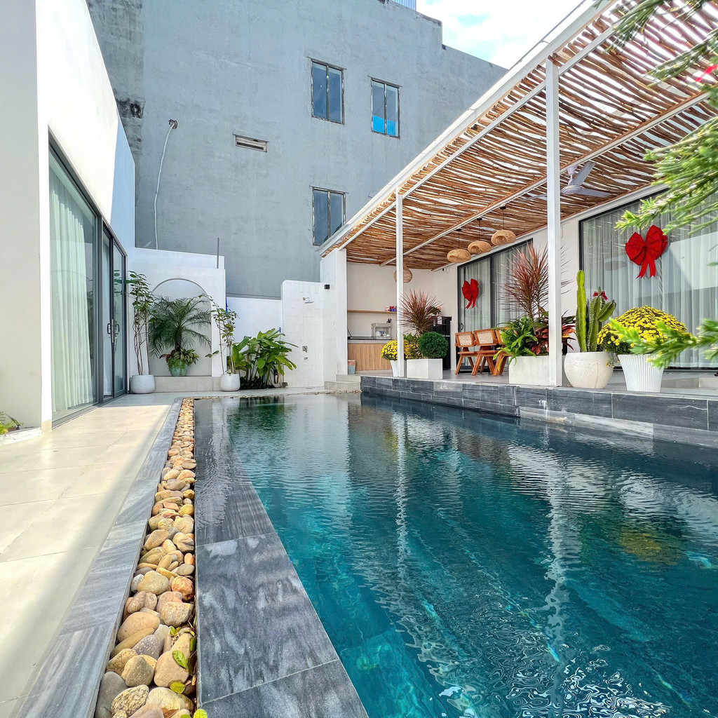 야외 주방은 간단한 조리와 식사를 즐기기에 충분하며, 수영장과 바로 이어져 휴식·식사·대화가 끊김 없이 이어지는 생활 동선을 제공합니다. 세탁기와 기본 주방 설비까지 갖춰 장기 숙박도 무리가 없고, 미케해변·선짜야시장·한시장 등 인기 명소까지 차량 약 5~10분 거리라 여행 동선이 매우 효율적입니다. 도심 속에서도 조용하고 프라이빗한 감성을 유지하며 머무는 자체가 힐링이 되는 풀빌라입니다. 🌿🏡