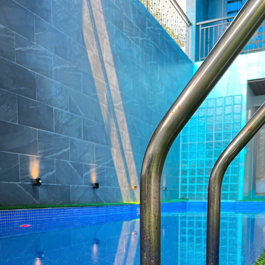 ‘18. 카일리’는 5룸 · 5베드 · 6욕실 구성의 도심형 프리미엄 풀빌라로, 2층 구조에 외부 수영장과 1층 BBQ존이 자연스럽게 이어지는 개방감 있는 레이아웃을 갖추고 있습니다. 수영장(8m × 4m × 1.5m)은 햇빛이 잘 들고 주변 시야가 탁 트여 있어 아침 수영부터 저녁 휴식까지 폭넓게 활용할 수 있으며, 거실·주방과 바로 연결된 동선은 머무는 동안 편안한 생활감을 제공합니다.