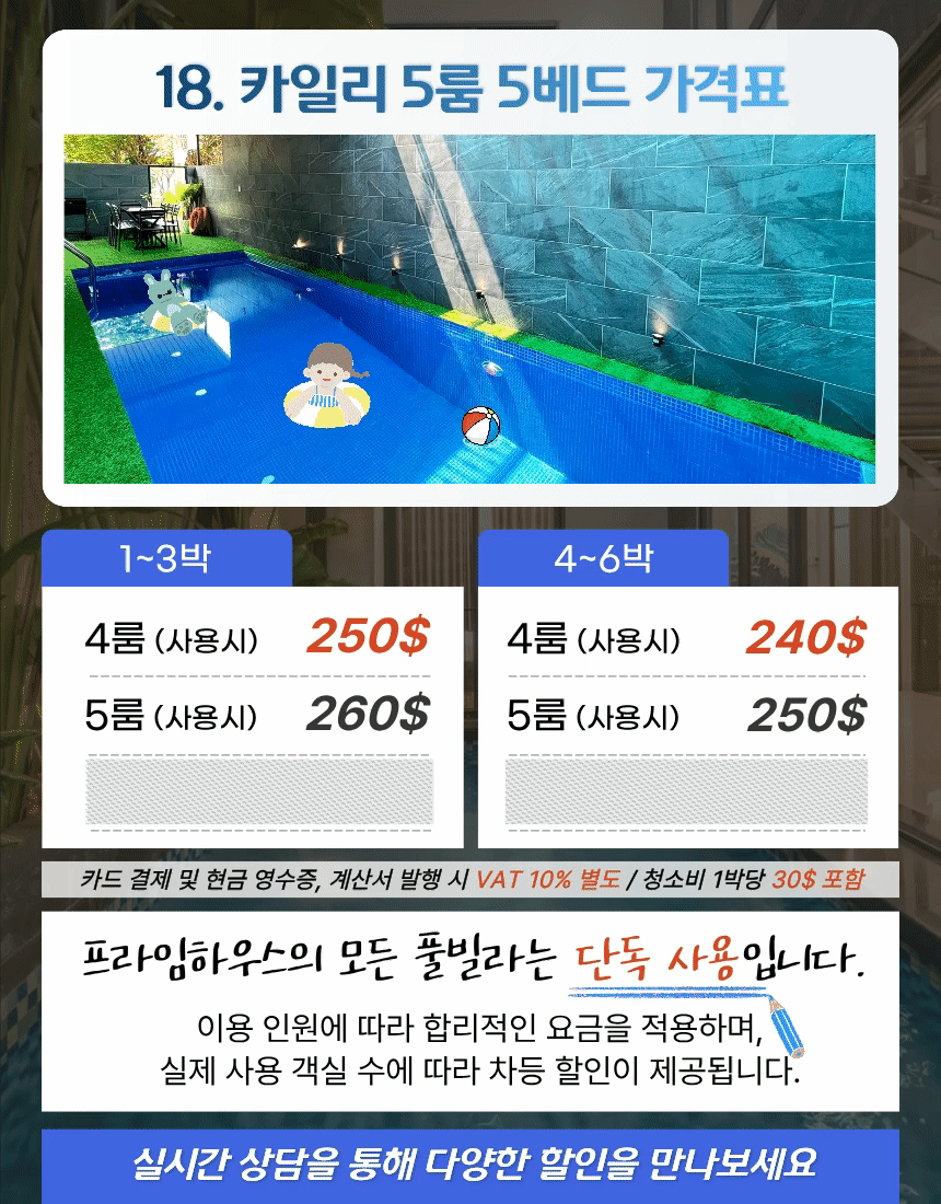 | 5룸 (사용시) | 260$ | 250$ |