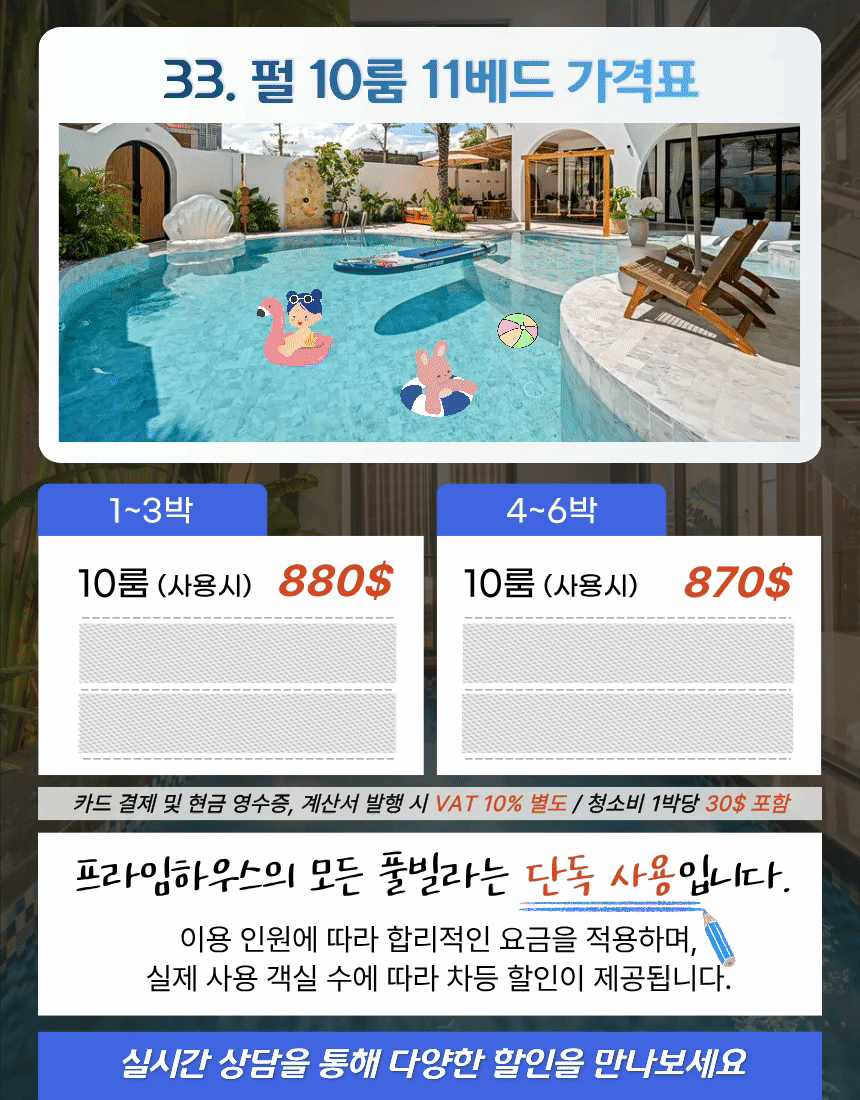 | 10룸 (사용시) | 880$ | 870$ |