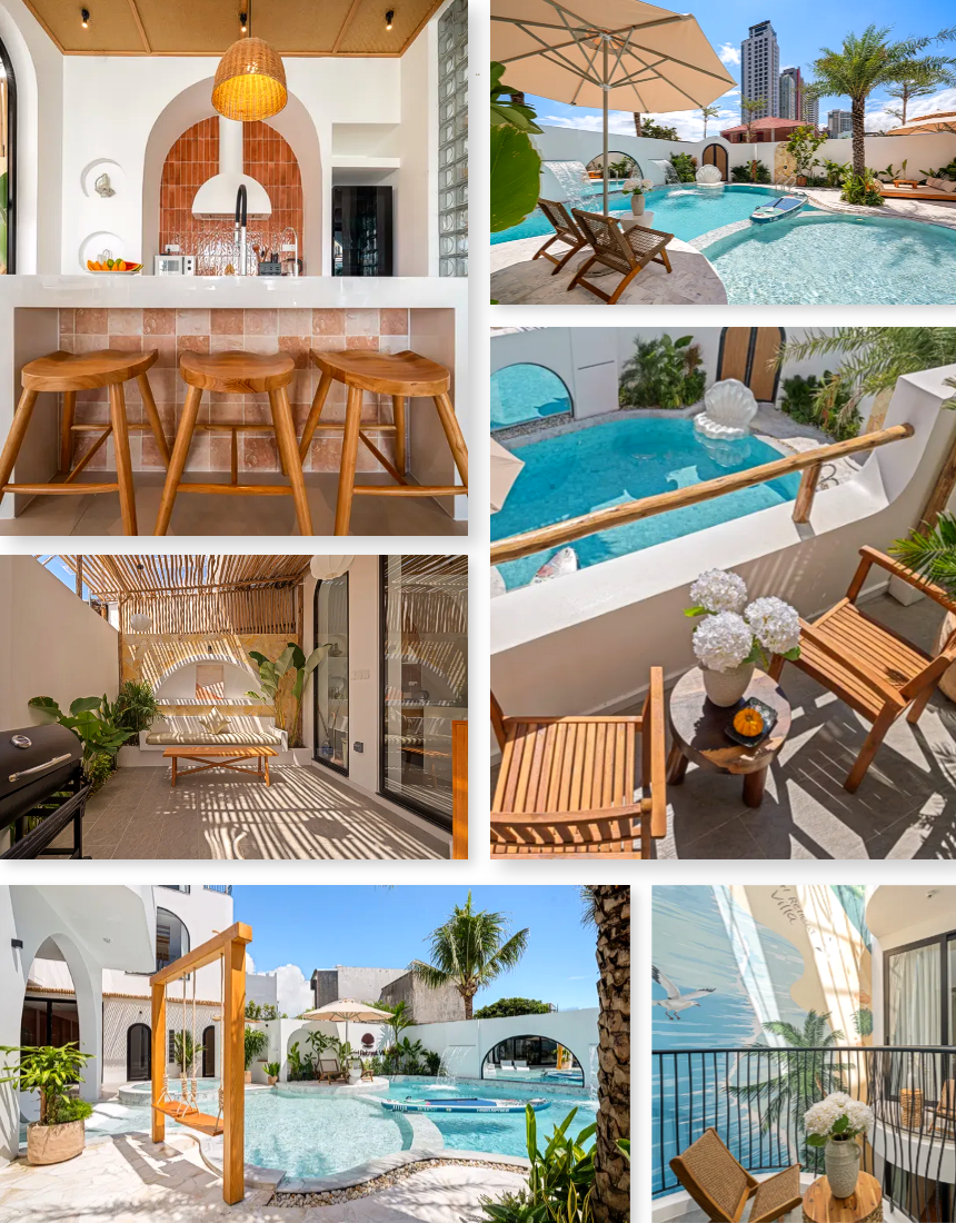 모든 객실은 개별 욕실을 갖추고 있어 프라이버시가 완벽히 보장되며, 일부 객실은 욕조와 발코니까지 마련돼 장기 숙박에도 실용적입니다. 넓고 개방감 있는 구조는 동선을 명확하게 만들어 다인원이 함께 지내기 편하고, 세탁기·건조기 등 생활 편의 설비가 완비돼 체류 중 불편함이 없습니다. 미케해변·선짜야시장·한인타운까지 차량 5~10분 거리의 우수한 입지는 관광·식사·쇼핑 모두를 수월하게 해주는 요소입니다. 프라임하우스의 정기 관리로 청결이 유지되는 완성도 높은 풀빌라입니다. 🌴✨