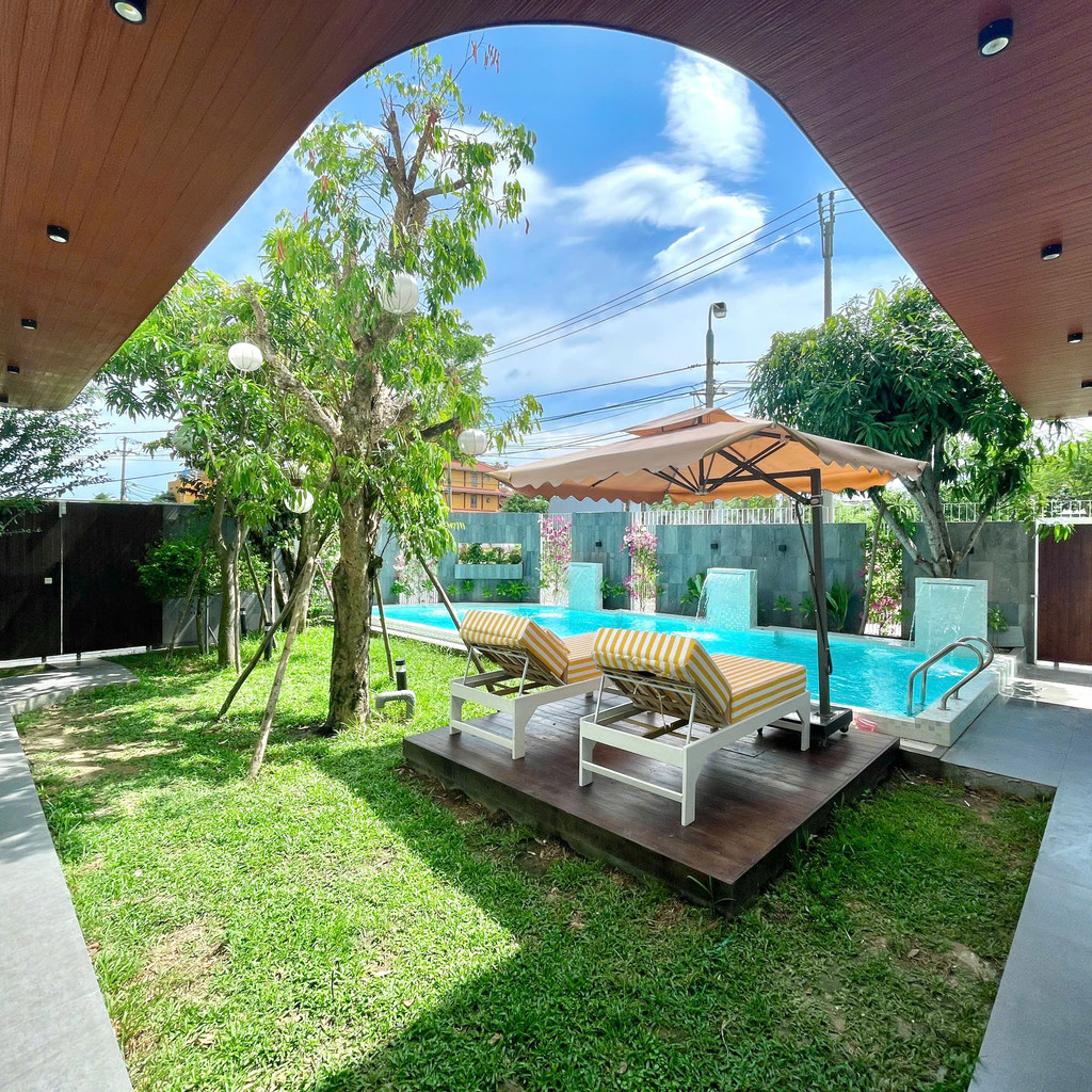 2층에는 원베드룸 3개가 각각 개별 욕실과 일부 욕조를 갖춘 형태로 배치되어 있어, 가족·친구 단위 여행에서도 프라이버시가 잘 유지됩니다. 전 객실 에어컨, 세탁기, 주방 설비 등 장기 숙박을 고려한 기본 편의 기능도 알차게 갖추고 있습니다. 미케해변·한인타운까지 차량 약 5~10분 거리라 해변·식사·카페 동선이 효율적이며, 조용한 주거 환경 속에서 “깔끔하고 실용적인 풀빌라”를 원하는 여행객에게 잘 맞는 구조입니다. 🌿