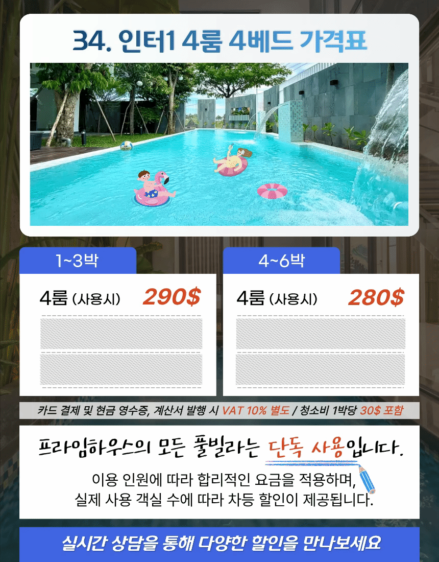 | 객실 구성 | 4룸 · 4베드 · 5욕실 · 거실 · 주방 |