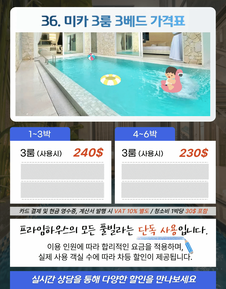| 3룸 (사용시) | 240$ | 230$ |