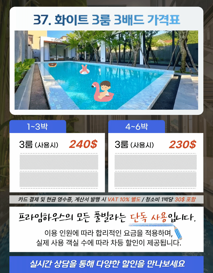 | 공항 픽업 / 샌딩 서비스 | 다낭 공항 → 풀빌라 간 전용 차량 이동 | 유튜브 구독 & 네이버 카페 회원 전용 |
