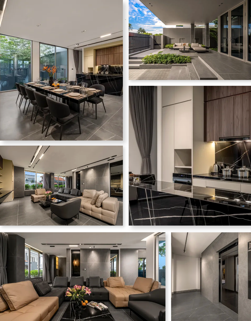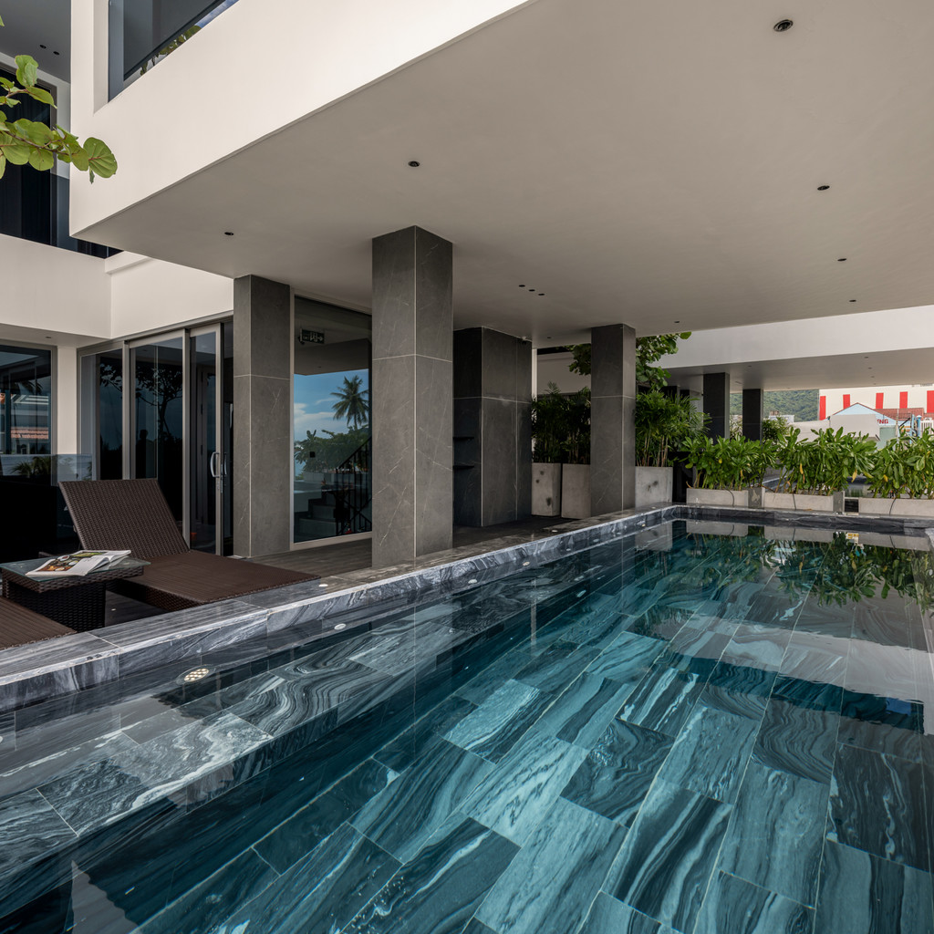 1층에는 엘리베이터·주방·세탁기가 함께 배치돼 있어 장기 숙박에서도 생활 편의가 뛰어납니다. 조리 도구·식기류가 완비되어 단체 조리도 가능하며, 짐 이동이 많은 일정에서도 엘리베이터로 편하게 이동할 수 있습니다. 미케해변·한인타운까지 차량 5~10분 거리라 접근성이 좋고, 고급 시설과 실용성을 함께 원하는 여행객에게 적합한 풀빌라입니다.
