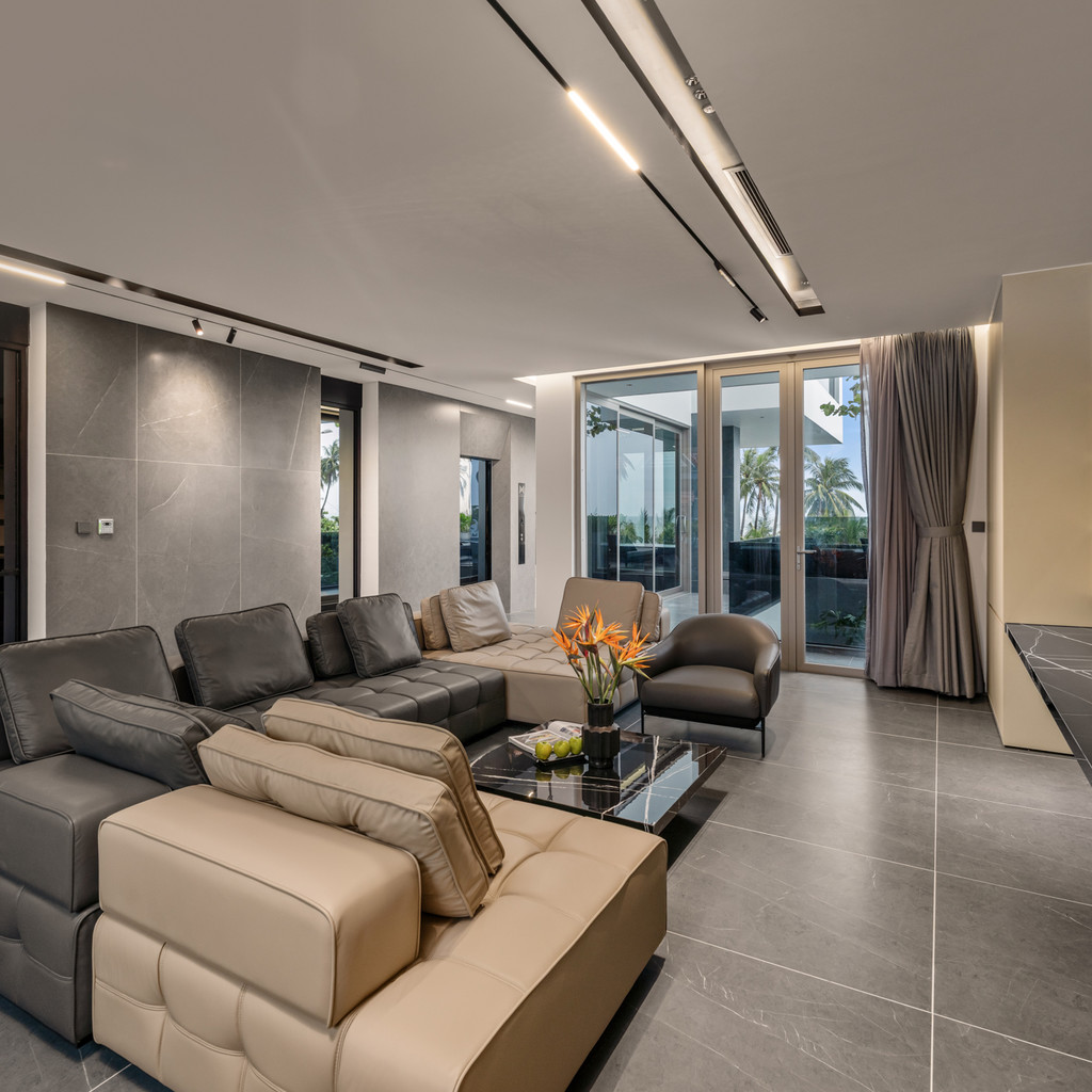 ‘41. M스위트 C2’는 사우나·실외 수영장·엘리베이터까지 갖춘 6룸·6베드·7욕실 규모의 슈퍼 프리미엄 도심형 풀빌라입니다. 5층 구조로 설계되어 있으며, 2층에 자리한 실외 수영장(4.4m × 2.8m × 1.5m)을 중심으로 거실·사우나·공용 화장실이 연결돼 휴식 동선이 단순합니다. 1층에는 주방과 세탁기, 엘리베이터가 배치되어 있어 짐 이동·식사 준비·세탁까지 한 번에 처리하기 좋고, 장기 일정에도 불편함이 없습니다.