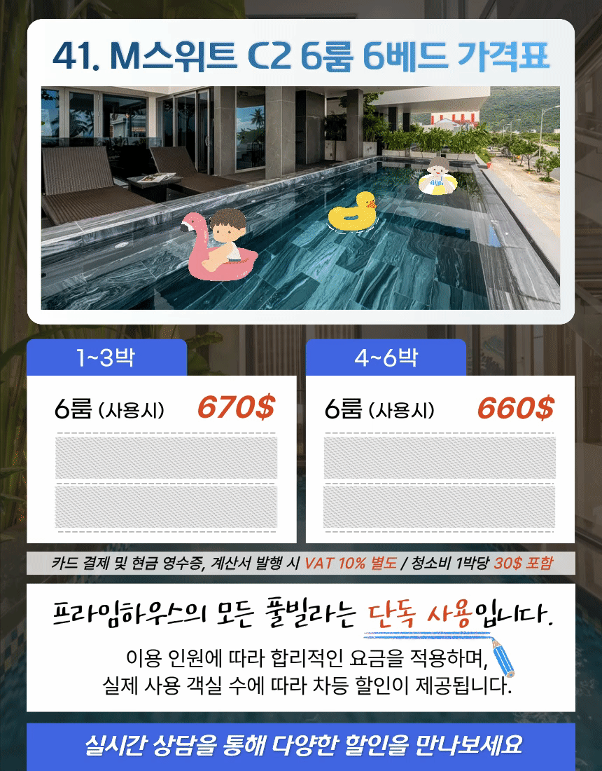 | 6룸 (사용시) | 670$ | 660$ |