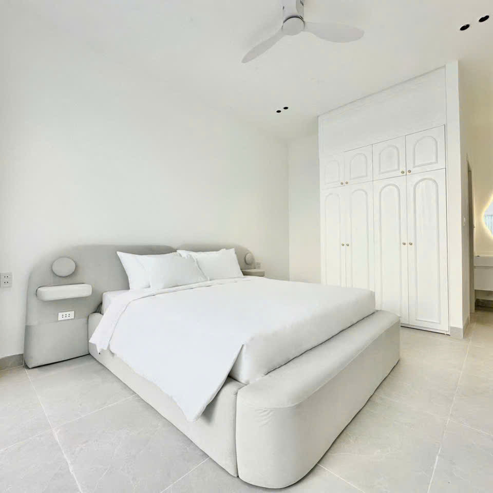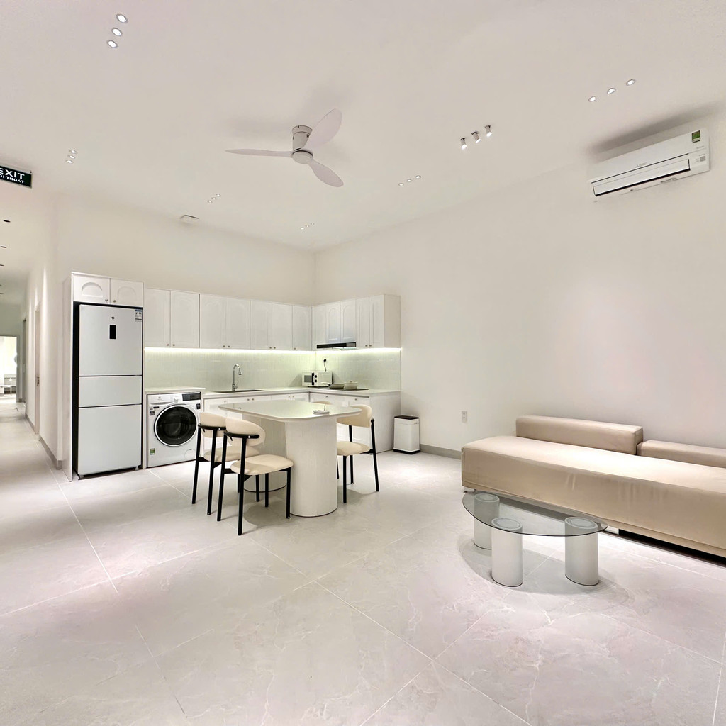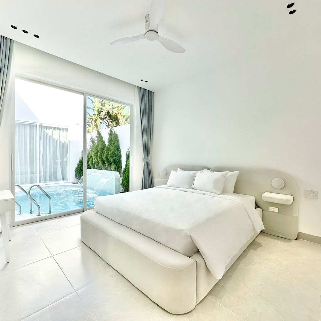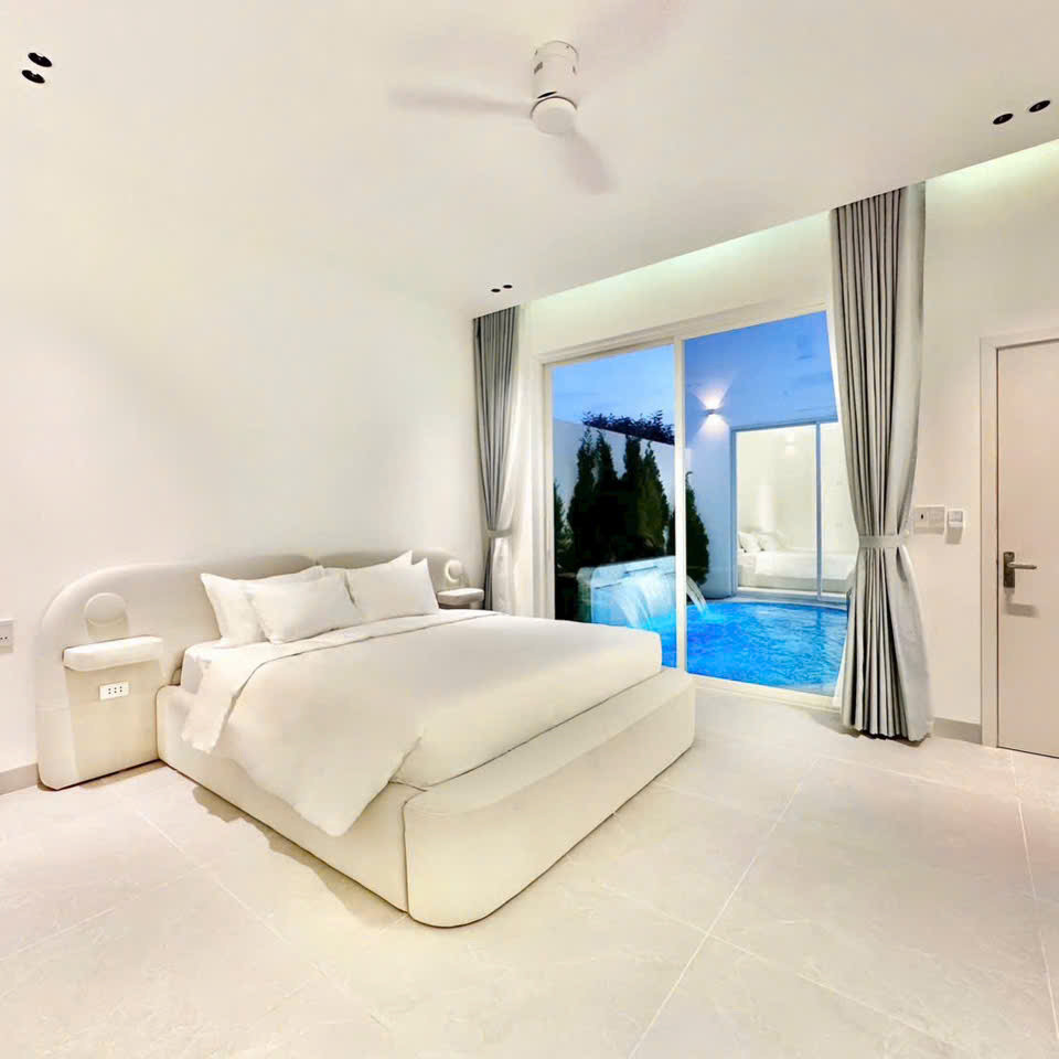 ‘52. 미니 28’은 2룸 · 2베드 · 3욕실로 구성된 1층 단층 구조의 도심형 스탠다드 풀빌라입니다. 화이트톤 인테리어와 컴팩트한 평면이 특징이며, 4.6m × 3.2m × 1.5m 규모의 실외 수영장이 거실·주방과 가깝게 배치되어 있어 작은 규모임에도 활용도가 높습니다. 두 개의 원베드룸은 각각 내부 욕실과 실내 욕조를 갖추고 있어 동행 인원이 각자 프라이빗하게 쉴 수 있는 구조입니다. 세탁기·기본 주방 설비·에어컨 등 필수 설비가 알맞게 갖춰져 있어 짐이 많은 일정에도 사용이 단순합니다.