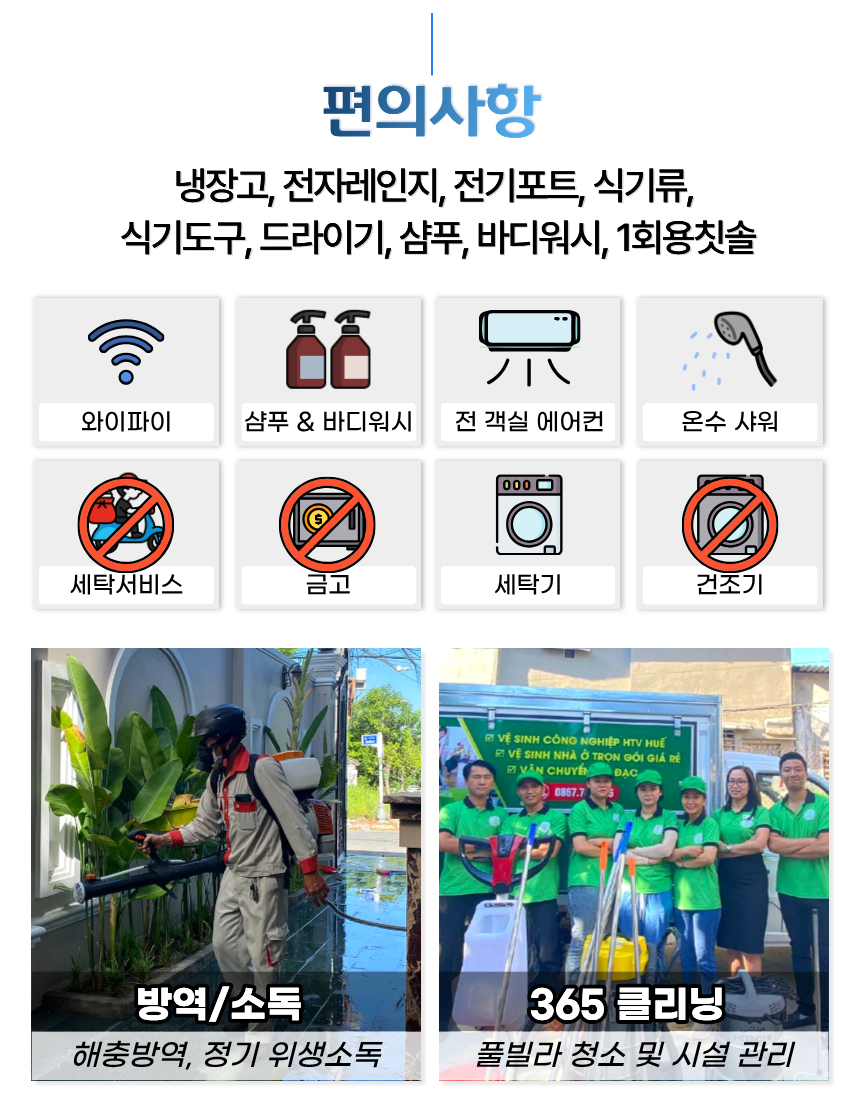 | 통신 / 기타 | 와이파이 · 방역/소독 시스템 · 365 클리닝 관리 |