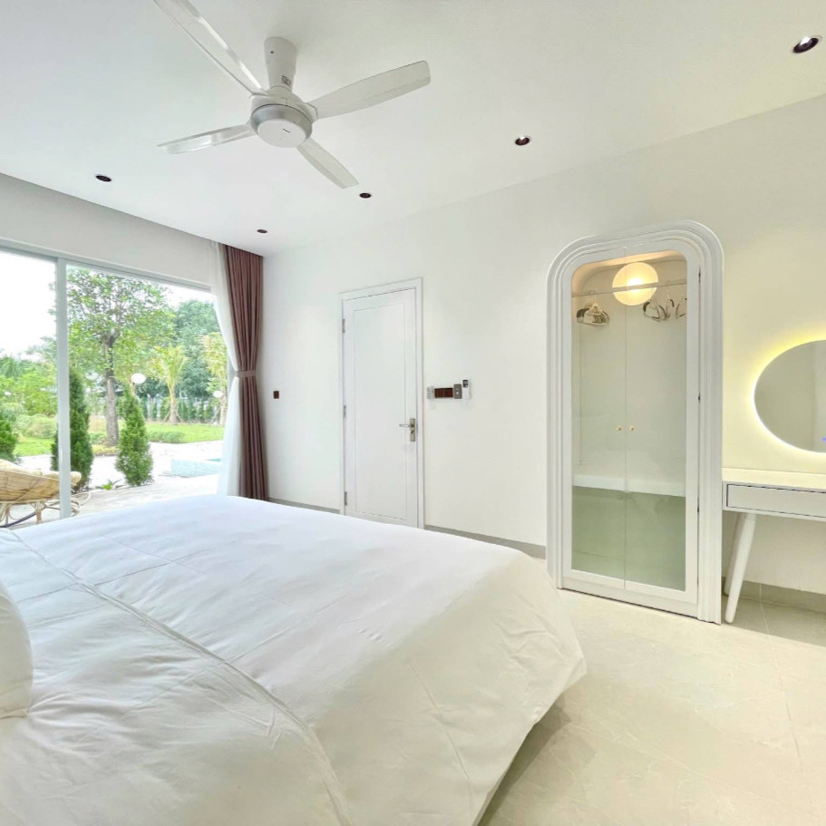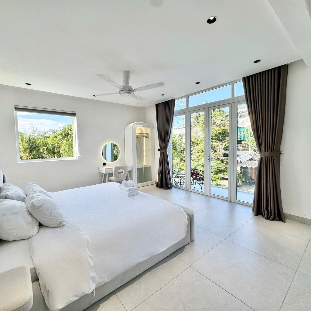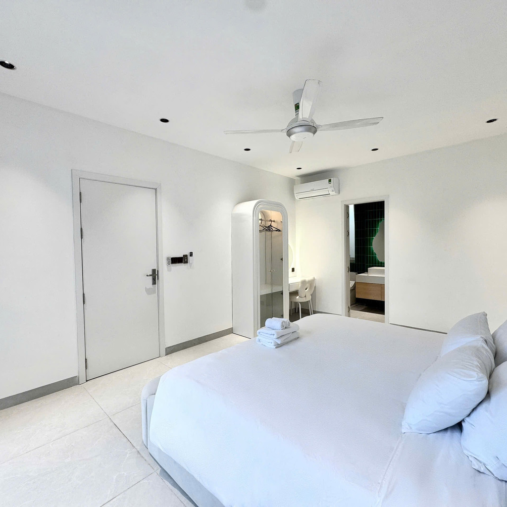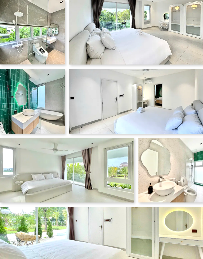 2층에는 원베드룸 2개가 배치되어 각 객실마다 전용 욕실과 일부 욕조가 마련돼 있어 일행 간 프라이버시를 유지하면서 머물 수 있습니다. 화이트톤과 우드톤을 조합한 인테리어와 따뜻한 조명이 안정적인 분위기를 만들어주며, 롯데마트·안트엉거리·미케해변·오행산까지 차량 약 10분 전후로 이동이 가능해 다낭 여행의 거점으로 활용하기 좋습니다. 조용한 주거 라인에 위치해 도심 접근성과 프라이빗한 휴식을 동시에 원하는 여행객에게 적합한 풀빌라입니다.🌿🏊♂️