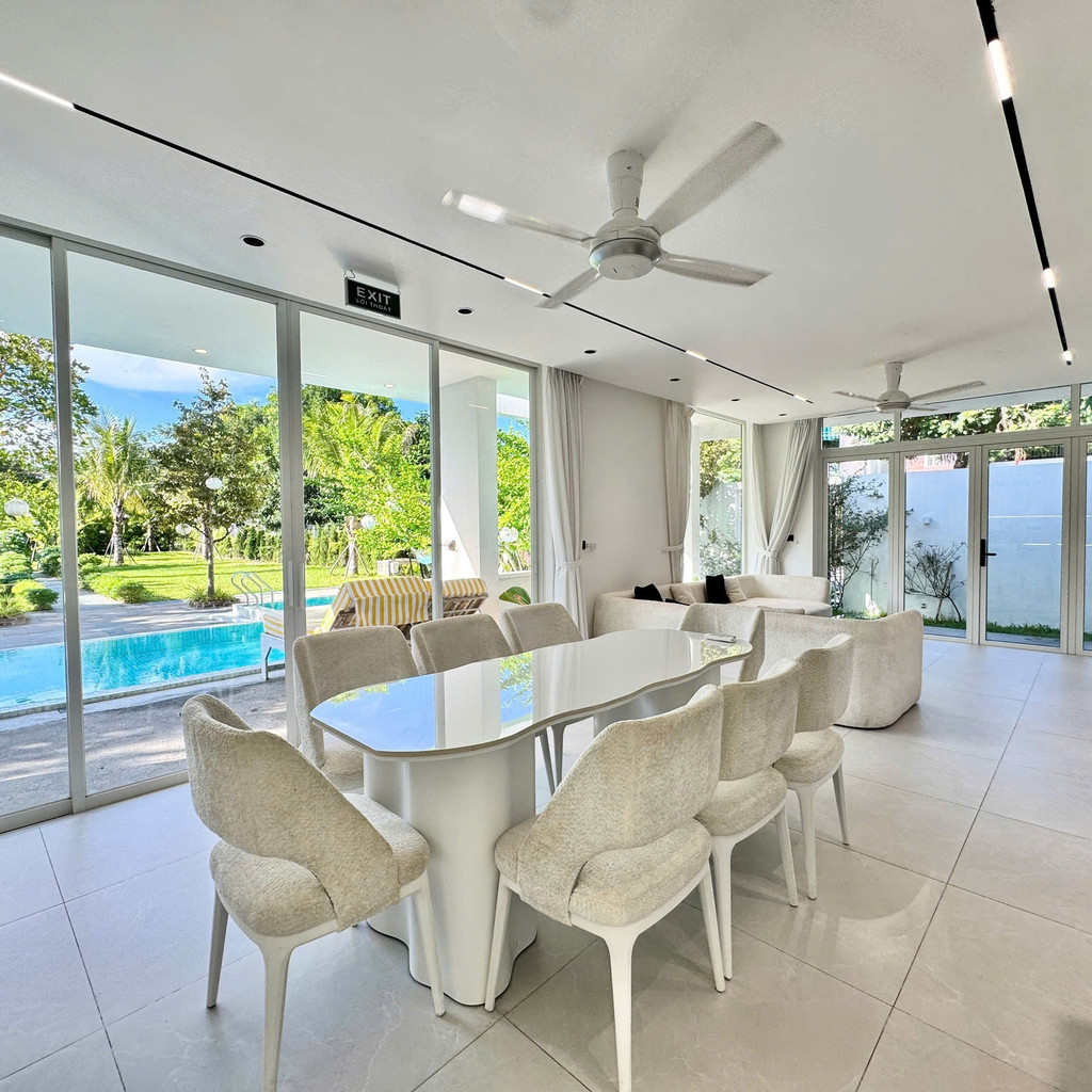 넓은 외부 수영장은 정원과 한 영역으로 이어져 있어 물놀이와 야외 휴식을 동시에 즐기기 좋습니다. 거실·주방과 수영장이 가깝게 배치돼 간단한 식사나 음료 준비 후 바로 수영장으로 이동할 수 있어 동선이 단순합니다. 전면 유리창을 통해 실내에서도 정원과 수영장 뷰를 한눈에 볼 수 있어 체류 내내 개방감이 유지됩니다.🌤️