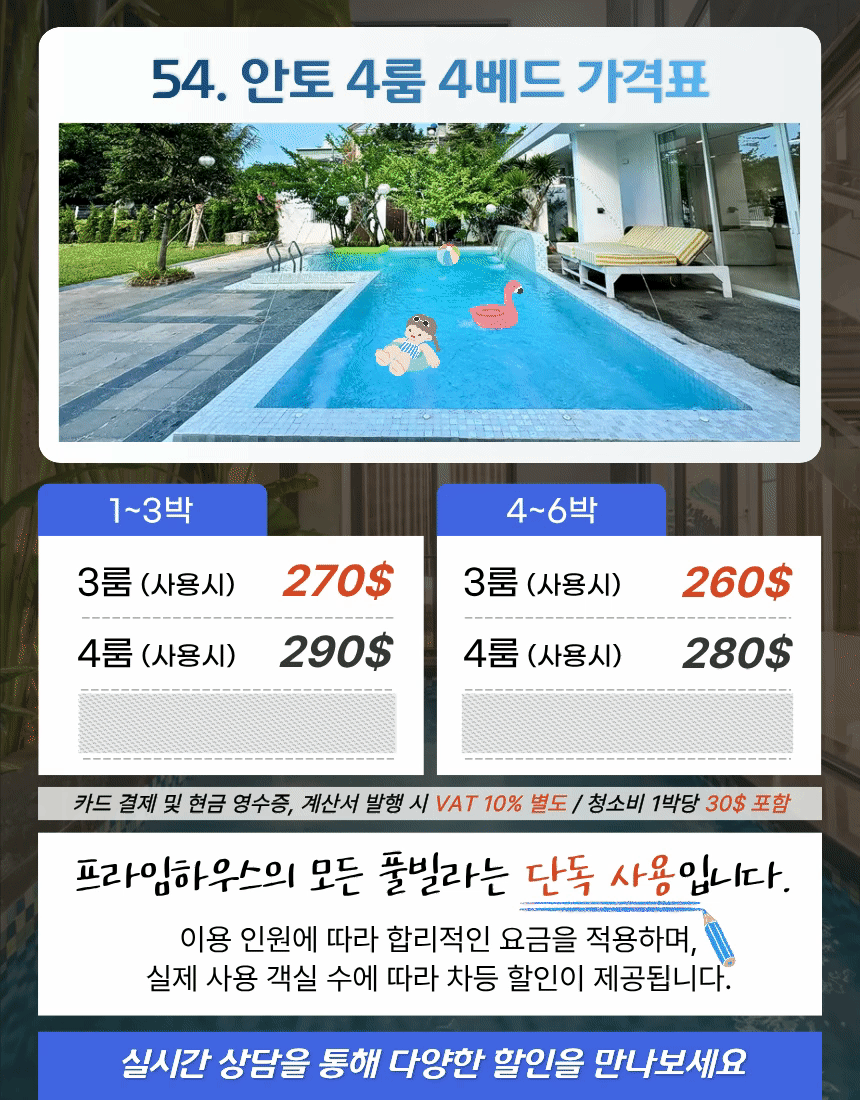 | 4룸 (사용시) | 290$ | 280$ |