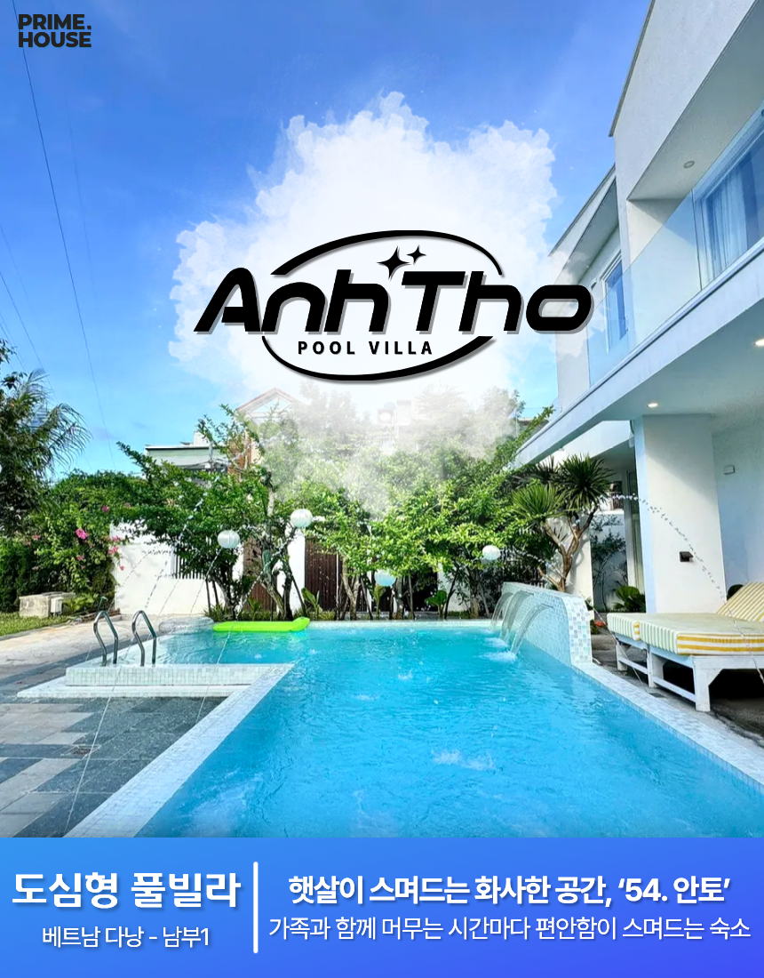 ‘54. 안토’는 4룸 · 4베드 · 5욕실로 구성된 2층 구조의 도심형 스탠다드 풀빌라입니다. 1층에는 가로 6.7m × 세로 4.2m × 수심 1.5m 규모의 실외 수영장과 정원이 함께 배치되어 전면 유리창 너머로 탁 트인 개방감을 느낄 수 있으며, 거실·주방과 이어지는 구조라 물놀이 후 휴식·식사 동선이 단순합니다. 1층에는 내부 욕실과 욕조를 갖춘 원베드룸 2개가 자리해 아이·어르신 동반 일정에도 사용이 편리하고, 세탁기가 같은 층에 있어 수건·의류 정리도 수월합니다.🌤️