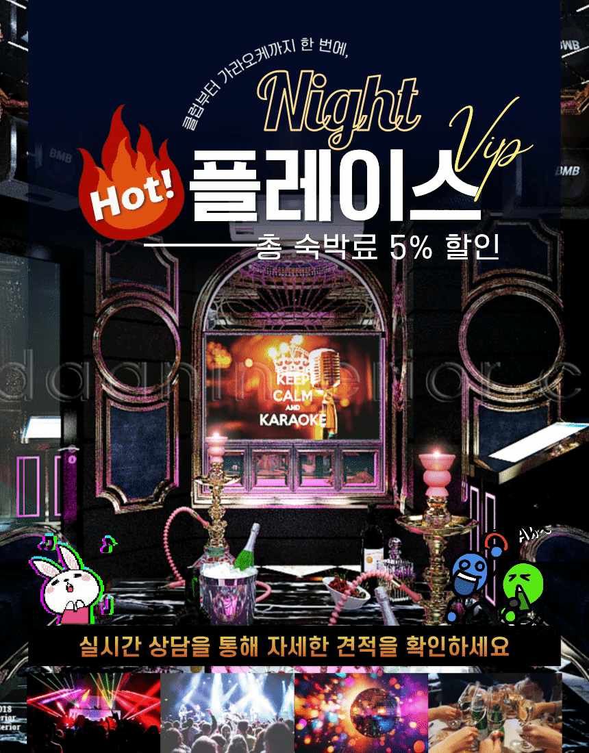 | 핫플레이스 VIP | 클럽 · 라운지 · 가라오케 제휴 이용 + BBQ 또는 씨푸드 세트 1회 포함 | 총 숙박료 5% 할인 |