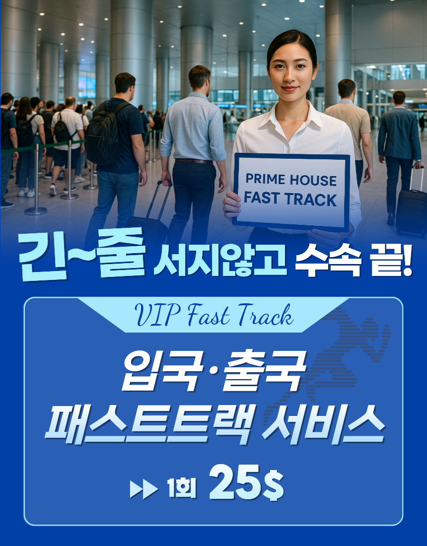 | VIP 입/출국 패스트 트랙 | 공항 도착 및 출국 시 우선 심사 전용 | 1회 1인 $25 |