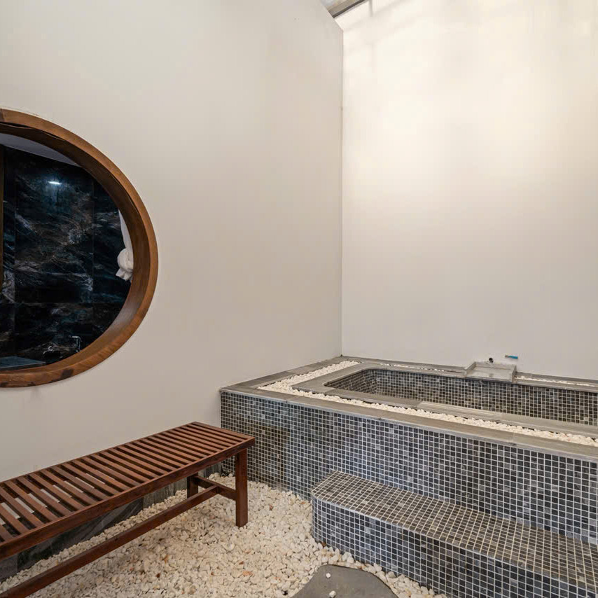 1층 외부 수영장은 연못·정원 요소와 함께 조성되어 물놀이와 자연 휴식을 동시에 즐길 수 있습니다. 거실·주방과 가까운 구조라 젖은 상태로 이동하기 편하며, 사우나가 같은 층에 배치돼 있어 수영—휴식의 순환이 자연스럽습니다. 수영장 앞 채광이 안정적으로 들어와 공간 전체가 밝은 분위기를 유지합니다.🌤️
