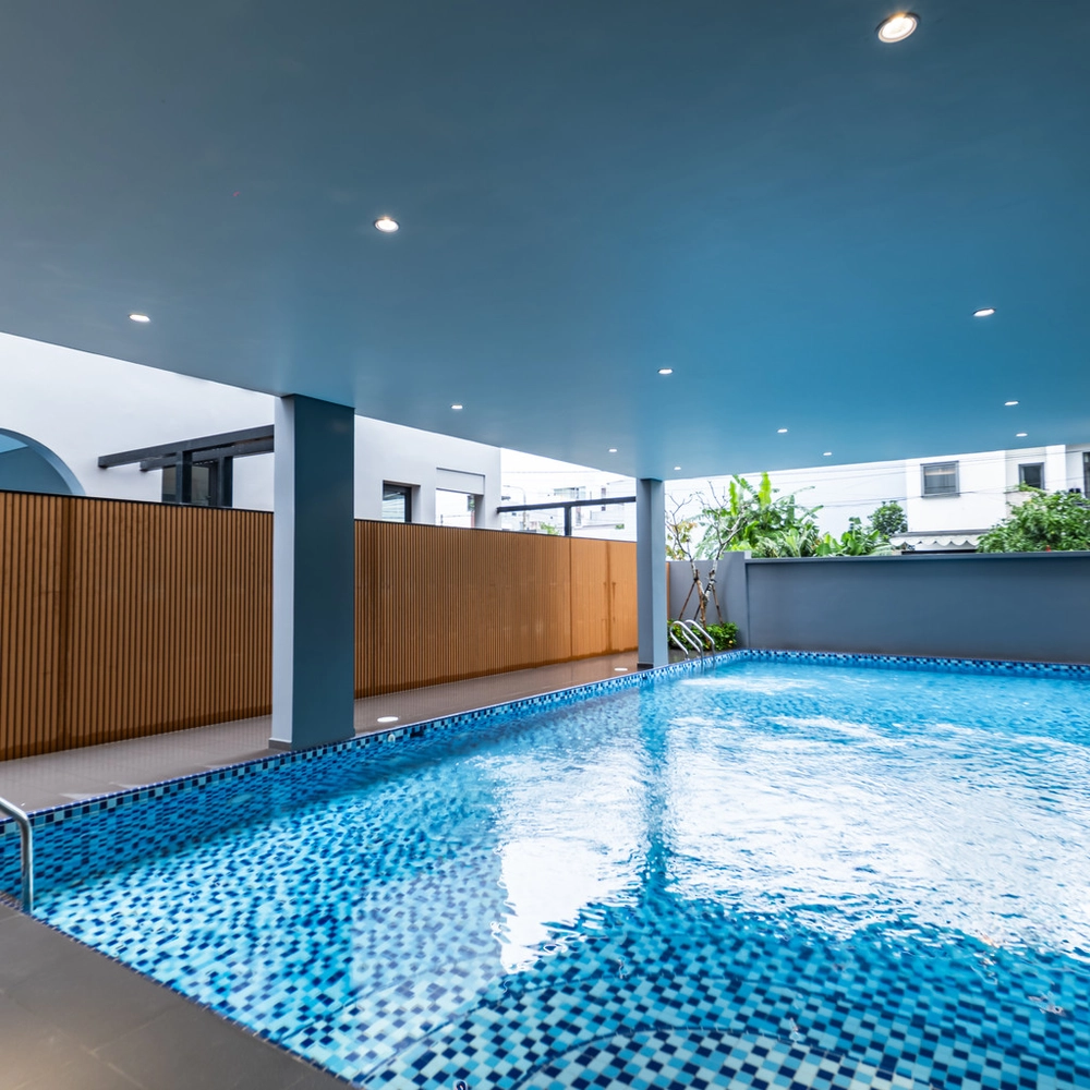 9m × 3.8m × 1.6m 규모의 넓은 야외 수영장은 이 빌라의 가장 큰 매력 포인트입니다. 길게 펼쳐진 구조로 여러 명이 함께 이용해도 여유로운 공간을 제공하며, 풀 사이드와 실내 공간이 자연스럽게 연결되어 수영과 휴식을 동시에 즐기기 좋습니다.