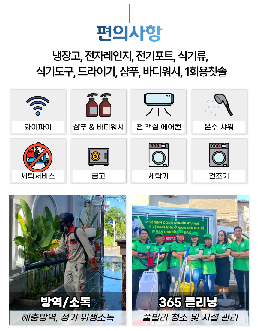 | 통신 / 기타 | 와이파이 · 방역/소독 시스템 · 365 클리닝 관리 |