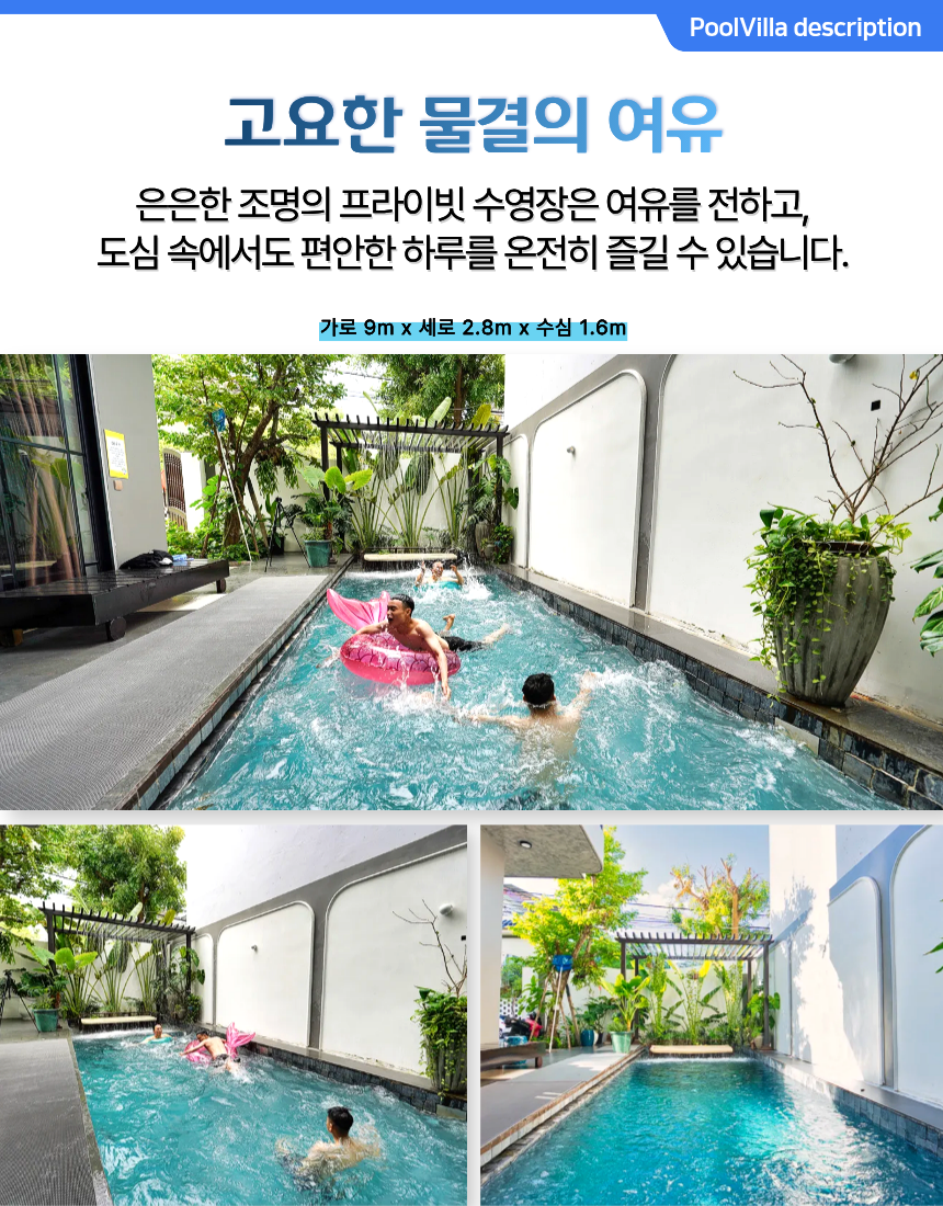 클래식한 인테리어와 현대적 편의성이 조화를 이룬 도심형 프리미엄 풀빌라로,