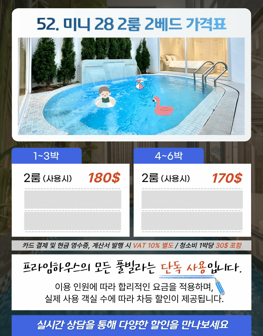 | 2룸 (사용시) | 180$ | 170$ |