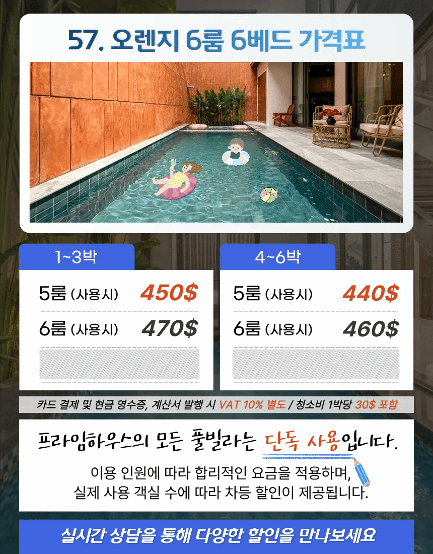 | 5룸 (사용시) | 450$ | 440$ |
