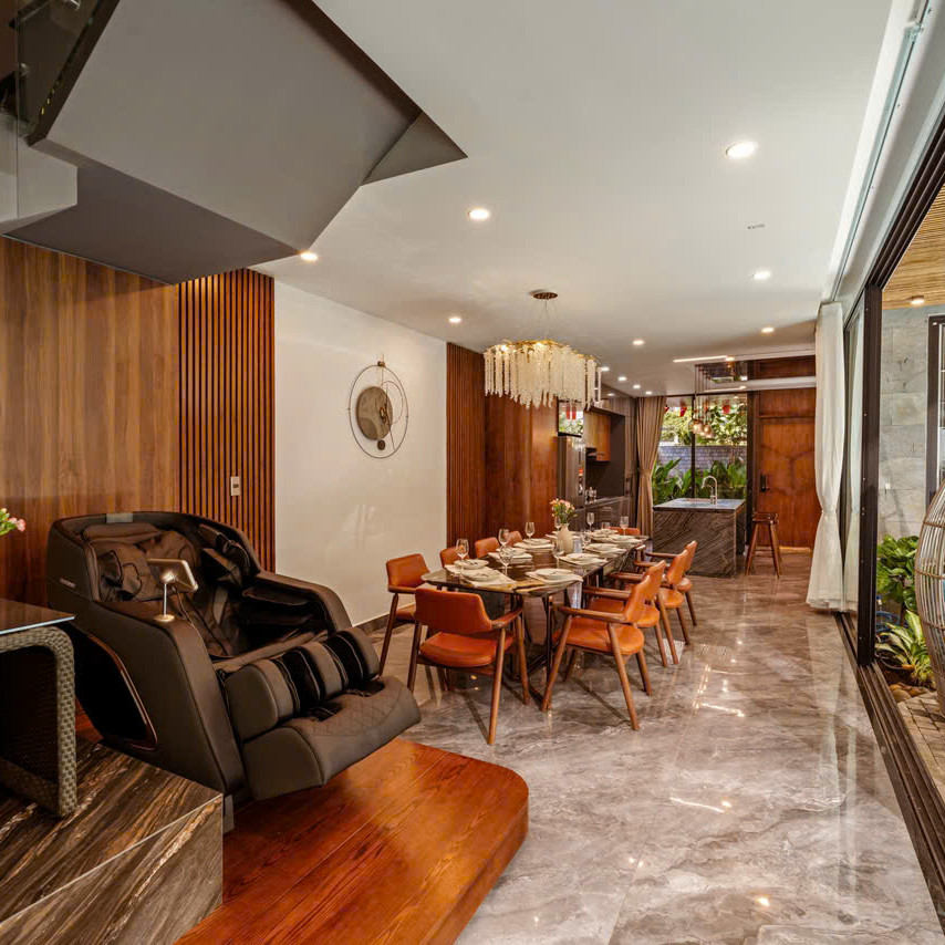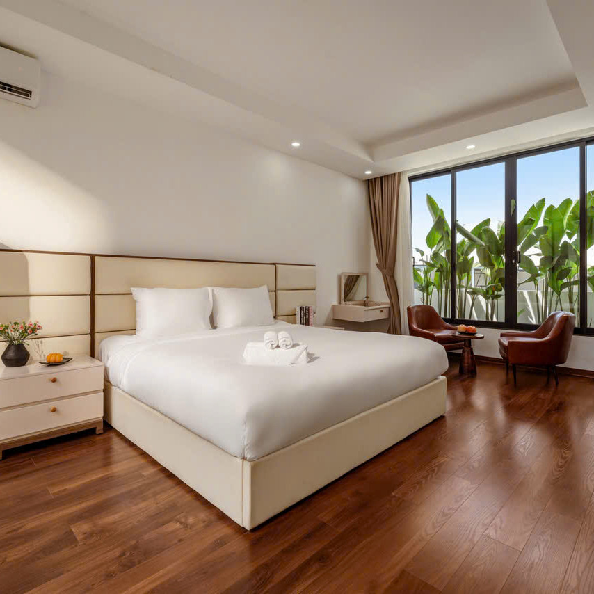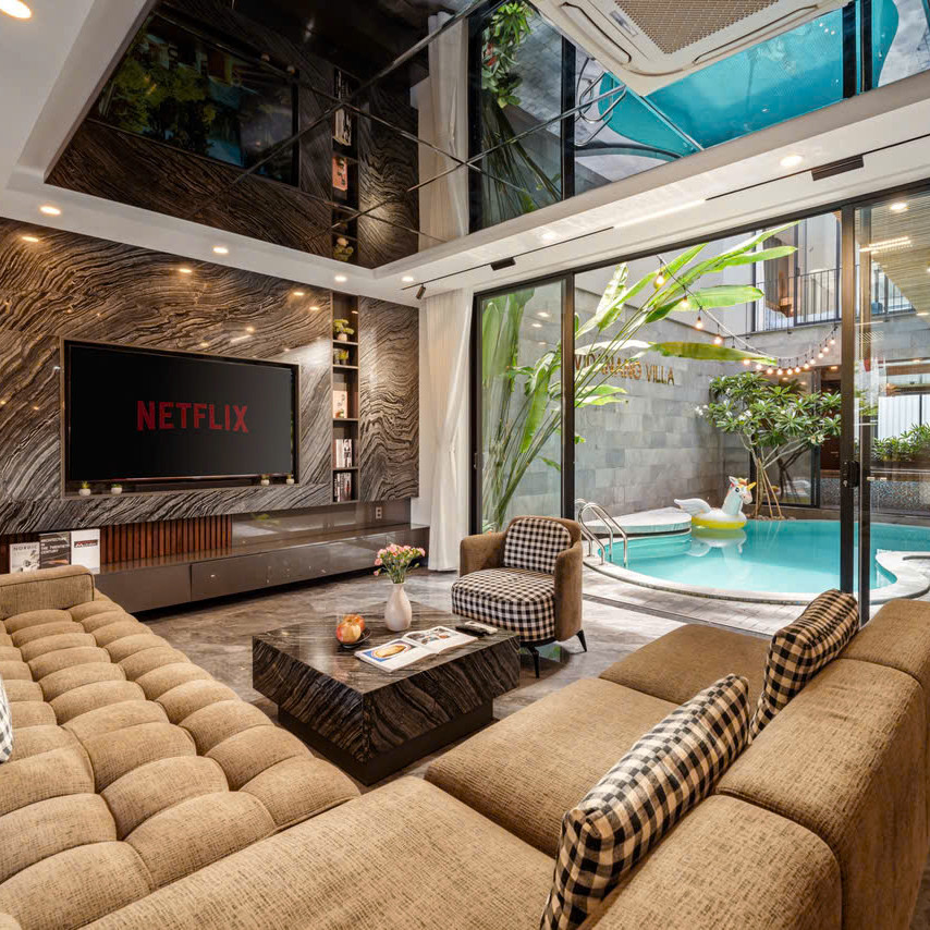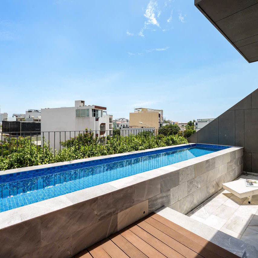 3층에는 가로 8m × 세로 2m × 수심 1.4m의 루프탑형 실외 수영장이 추가로 마련돼 있어, 1층 수영장과 분리된 분위기에서 여유로운 물놀이를 즐길 수 있습니다. 2층 가라오케룸(유튜브 재생), 전용 헬스장, 루프탑 BBQ존 등 부대시설이 층별로 잘 나뉘어 있어 단체·가족 여행에서도 활동과 휴식을 자연스럽게 분리할 수 있습니다. 미케해변·오행산·안트엉거리·롯데마트까지 차량 약 5~10분 거리에 위치해, 해변·관광·식사를 모두 효율적으로 조합할 수 있는 하이엔드 풀빌라입니다.🌿🏊♂️