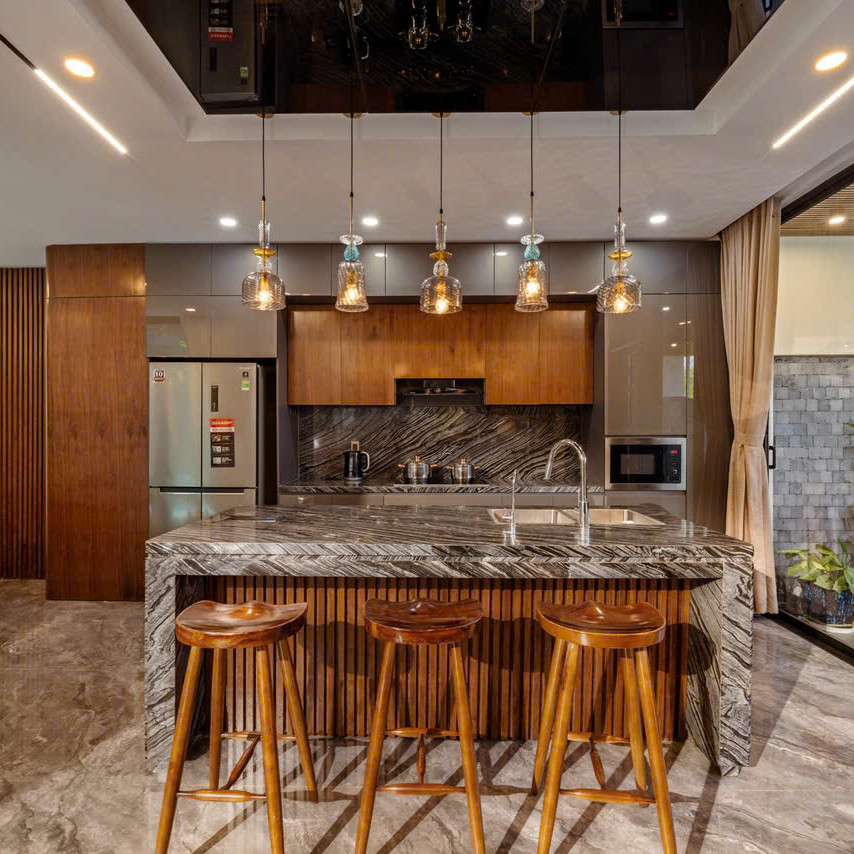 2층 헬스장과 가라오케룸(유튜브 재생), 4층 루프탑 BBQ존은 숙소 안에서 하루 일정을 채우기에 충분한 엔터테인먼트를 제공합니다. 주방에는 조리도구·식기류가 갖춰져 있어 단체 식사 준비가 가능하고, 세탁기·건조기·기본 가전이 모두 구비돼 있어 체류 중 관리가 수월합니다. 미케해변·오행산·안트엉거리·선짜야시장·롯데마트까지 차량 5~10분 거리에 위치해 외출 동선도 단순하며, 도심형 럭셔리 풀빌라의 기준을 원하는 여행객에게 적합한 선택입니다.✨