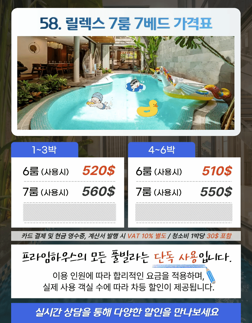 | 객실 구성 | 7룸 · 7베드 · 9욕실 · 거실 · 주방 |